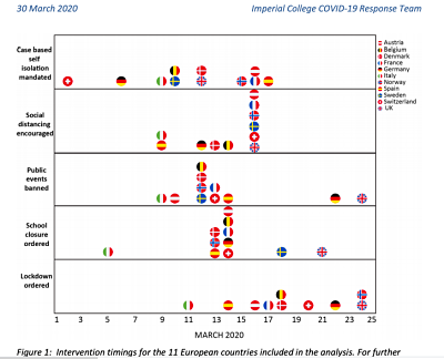Covid-19 – Sciences et Avenir mentionne une étude l’Imperial College de Londres « Le confinement et d’autres mesures prises pour freiner l’avancée de l’épidémie de Covid-19 auraient permis de sauver la vie de 59.000 personnes dans 11 pays européens, dont 2.500 en France, selon des chercheurs de l’Imperial College de Londres. Ces universitaires spécialistes en épidémiologie et en mathématiques ont modélisé la dynamique de l’épidémie en Europe et estimé le freinage de la contagion par SARS-CoV-2, dû aux différentes mesures prises dans les pays étudiés à des dates différentes les uns des autres. Les mesures prises en compte sont la quarantaine pour les malades, la fermeture des écoles et universités, l’interdiction des rassemblements, les mesures de distanciation sociale et le confinement général. L’étude complète (en anglais) est disponible sur le site de l’Imperial College.