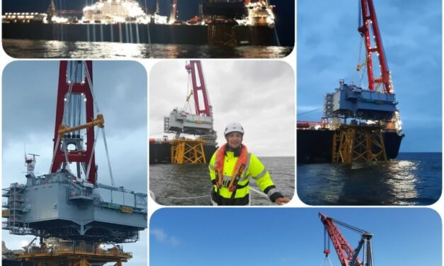 France – 19/08/2021 – energiesdelamer.eu. Mardi 17 août, la sous-station SNA-GD S34 a été remorquée sur sa barge jusqu’à la fondation construite par Rosetti pour y être déposée. Comme prévu, … Lire la suite de Parc de Saint-Nazaire : La première sous-station électrique en mer est installée