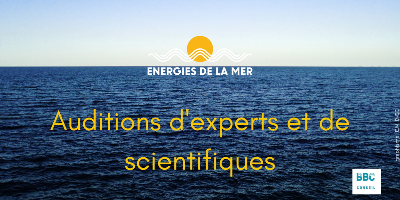 B-BC et energiesdelamer.eu ont notamment contribué à cette audition, en participant à son organisation. Un dossier spécial avec les « Biographies des intervenants » a été publié, et a été mis à disposition des participants, ainsi que le trimestriel MerVeille Énergie #2  « Énergies Marines, un océan de recherche (s) : une industrie et des chercheurs en action », qui avait bénéficié du soutien de l’Ifremer et de l’IFPEN. Le trimestriel MVE#2 dédié à la recherche présente 19 résumés et contributions scientifiques autour des énergies marines présentés lors de la Journée « Doctoriales » de l’ANCRE, organisée par l’IFREMER et l’IFPEN en octobre 2019.