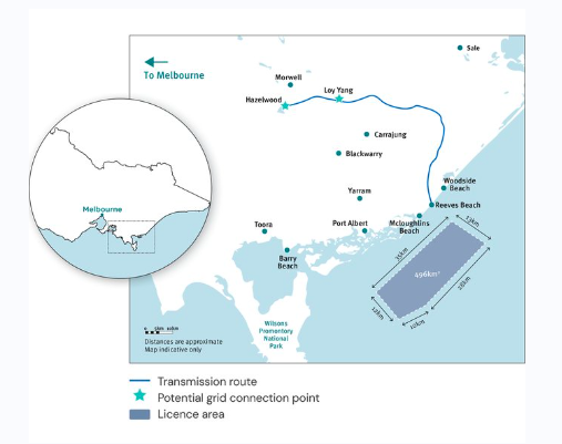 Il est proposé que le parc éolien offshore soit situé à 7-25 km au large de la côte sud du Gippsland, à proximité de villes telles que Port Albert, McLoughlins Beach et Woodside Beach.