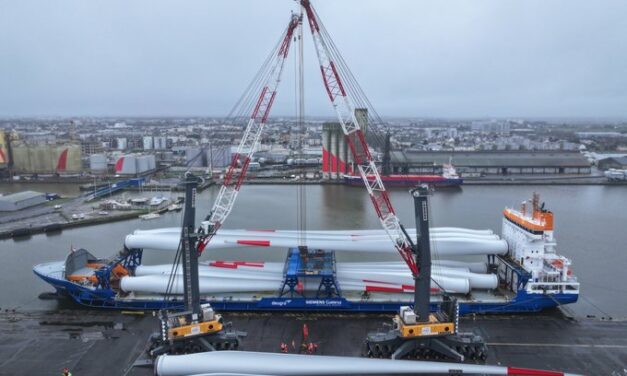 France – 20/01/2025 – energiesdelamer.eu. Les ports de Saint-Nazaire et BrestPort sont en pleine activité EMR. Les équipements des éoliennes du parc éolien en mer de Yeu-Noirmoutier , exploité par … Lire la suite de Le déchargement des huit premières turbines pour Yeu Noirmoutier au port de Saint-Nazaire