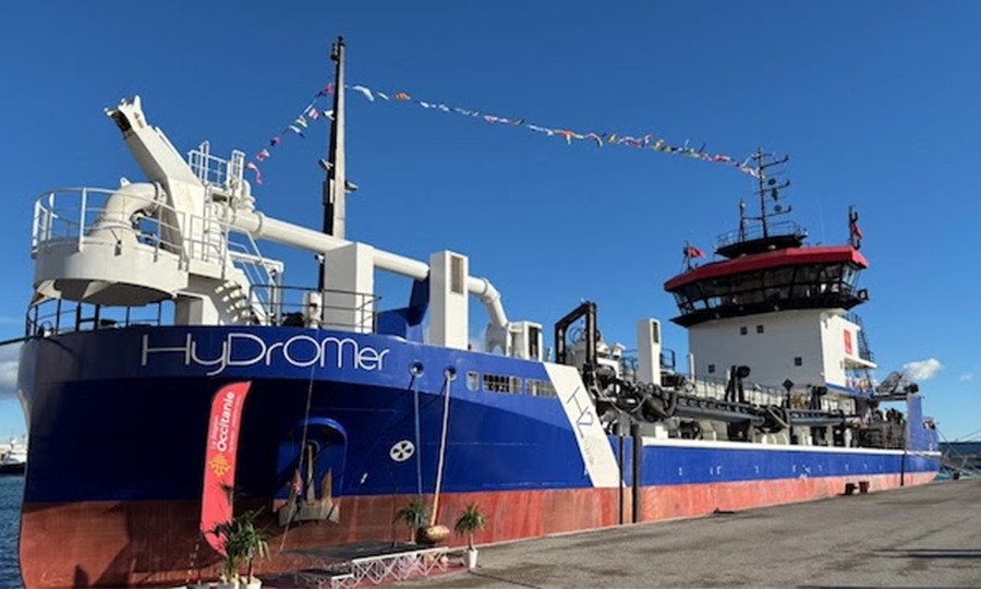 Commandée en mars 2022 par la Région Occitanie, Helion Hydrogen Power, la filiale d’Alstom, a fourni la pile à combustible de 200 kW pour la barge aspiratrice en marche à hydrogène. C’est une « première mondiale ».
