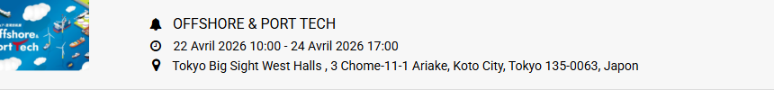 Offshore & Port Tech est un salon professionnel spécialisé qui, depuis sa création en 2024, s’impose comme une plateforme majeure d’innovation pour l’industrie maritime. Il se tient parallèlement au salon de référence Sea Japan. L’événement a lieu au Tokyo Big Sight, à Tokyo, l’un des plus grands centres d’exposition d’Asie, qui accueille chaque année des exposants et des professionnels internationaux.