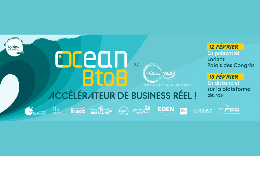 Ocean BtoB est l'événement annuel dédié aux technologies et aux marchés de l'économie maritime, réunissant entreprises, start-ups, PME et grands groupes, quel que soit leur secteur d'activité. Que vous soyez déjà impliqué dans le domaine maritime ou que vous envisagiez de vous diversifier vers ces marchés porteurs, Ocean BtoB est l'opportunité idéale pour accélérer votre business.