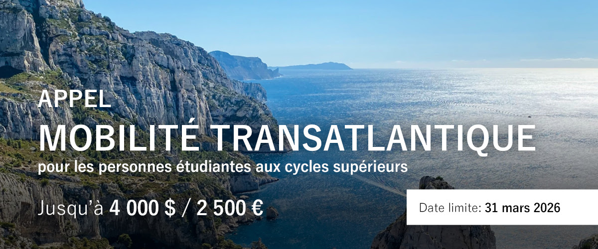 Cet appel vise à financer une partie des frais de mobilité dans le cadre de projets collaboratifs entre la France et le Québec. Pour que la personne candidate soit éligible, le projet réalisé dans le pays d'accueil (la France ou le Québec) doit être d'une durée d'au moins un mois. Le financement venant de l'IFQM sera utilisé pour rembourser les frais liés à la mobilité (transport, logement, etc.) directement à la personne sélectionnée, sur présentation des pièces justificatives. L'appel s'adresse à des personnes dont le projet s'inscrit dans l'une des sept thématiques de l'IFQM.